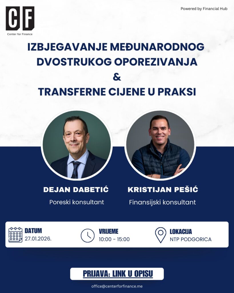 Privredna komora Crne Gore u saradnji sa Centrom za finansije i Financial Hub, u četvrtak 25.12.2025. godine, sa početkom u 10 časova, u...