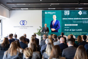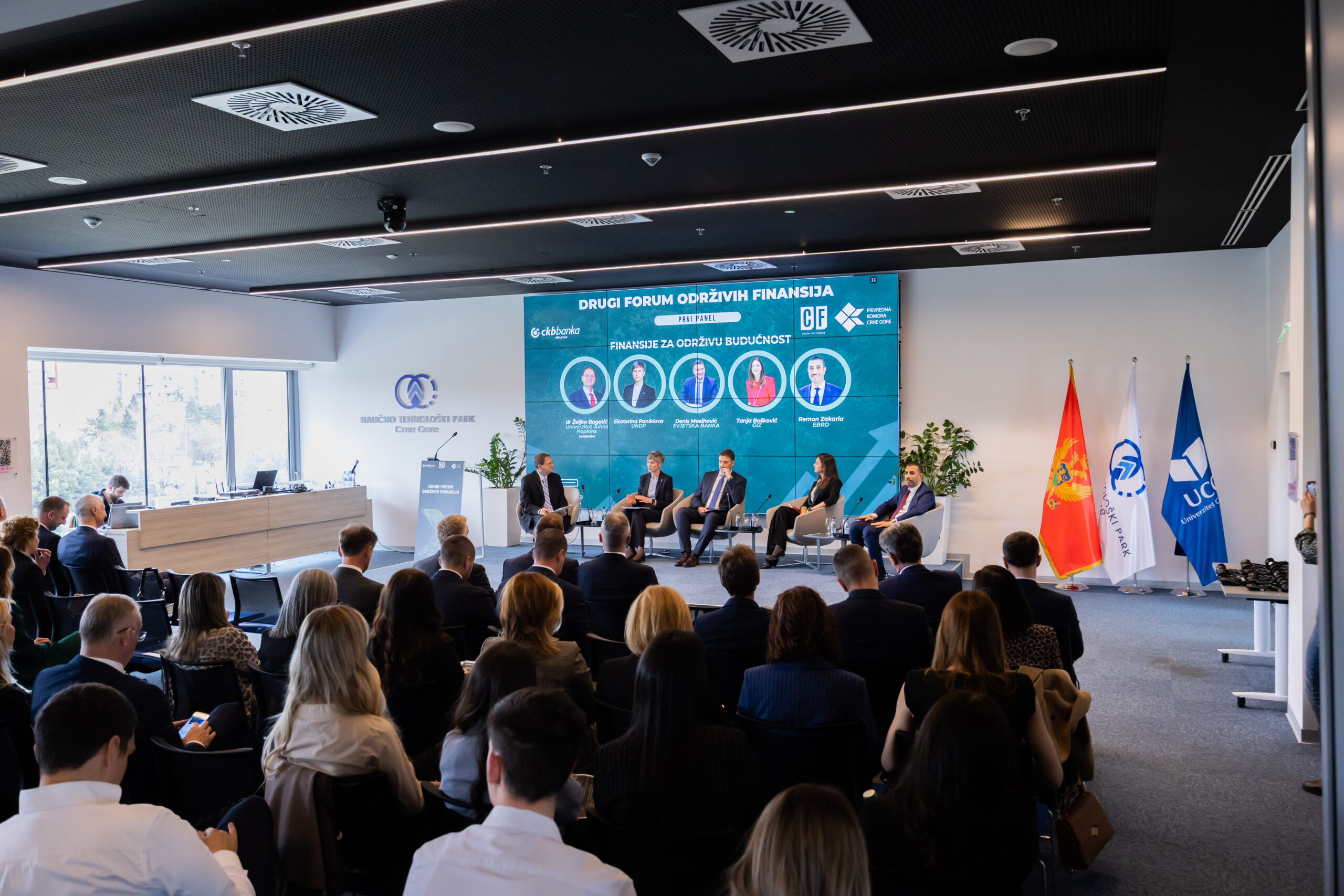 U Naučno-tehnološkom parku u Podgorici u petak 27. marta 2026. godine je održan Drugi forum održivih finansija, koji je okupio preko 150 predstavnika bankarskog i finansijskog sektora, donosioce odluka, kao i međunarodne partnere, s ciljem razmjene mišljenja o ulozi finansija u procesu zelene tranzicije i održivog ekonomskog razvoja. Fokus foruma bio je na usmjeravanju kapitala ka održivim investicijama, jačanju ESG standarda u poslovanju, kao i kreiranju stabilnog i podsticajnog ambijenta za mobilizaciju privatnog kapitala u pravcu dugoročnog i odgovornog rasta. Forum je organizovao Centar za finansije, licencirana naučno-istraživačka ustanova, u saradnji sa Crnogorskom komercijalnom bankom, našim već tradicionalnim partnerom. Posebno nam je zadovoljstvo i čast što je značaj ove teme prepoznala i Privredna komora Crne Gore, kao ključni akter u razvoju poslovnog i ekonomskog ambijenta, koja nam se ove godine pridružuje i kao partner Foruma. Medijiski sponzor je portal Bankar.